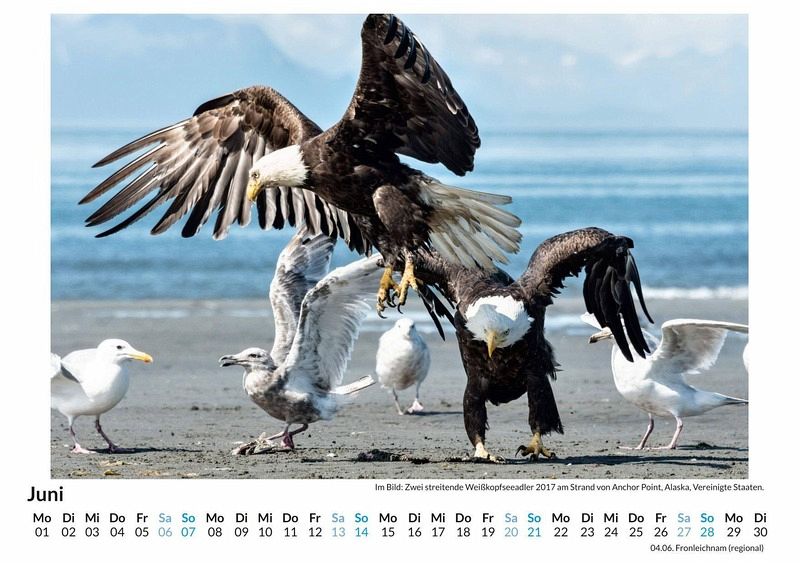 Erleben Sie die majestätische Schönheit der Weißkopfseeadler in Alaska mit diesem atemberaubenden Wandkalender! Lassen Sie sich Monat für Monat von 12 beeindruckenden Motiven dieser majestätischen Vögel in ihrer natürlichen Umgebung verzaubern. Gedruckt auf hochwertigem, lichtbeständigem Bilderdruckpapier, kommen die kraftvollen Aufnahmen perfekt zur Geltung. Der Kalender wird in Deutschland auf FSC-zertifiziertem Papier produziert - für ein umweltbewusstes Kauferlebnis. Holen Sie sich ein Stück unberührte Natur in Ihr Zuhause und genießen Sie die faszinierende Welt der Weißkopfseeadler das ganze Jahr über. Ideal auch als Geschenk für Naturliebhaber! Hochwertig Erleben Sie ein Jahr voller Eleganz mit unserem Premium-Fotokalender. Jedes der 12 Motive ist auf hochwertigem, lichtbeständigem Bilderdruckpapier gedruckt, um die Lebendigkeit jedes Bildes zu bewahren. Die robuste Spiralbindung gewährleistet Langlebigkeit und einfache Handhabung. Nachhaltig Unser Engagement für die Umwelt spiegelt sich in jedem Exemplar wider. Durch die Produktion auf Abruf reduzieren wir signifikant unseren Abfall. Wir verwenden ausschließlich umweltfreundliches, FSC-zertifiziertes Papier. Stolz gefertigt in Deutschland, achten wir bei unserer Logistik auf Klimaschutz, um unseren ökologischen Fußabdruck zu minimieren. Das ideale Geschenk Dieser Kalender ist das perfekte Präsent für jeden Anlass - ob Weihnachten, Geburtstage oder einfach als liebevolle Aufmerksamkeit zwischendurch. Geeignet für Freunde, Familie, Kinder und Erwachsene gleichermaßen, bereichert er jedes Zuhause mit seiner Vielfalt und Schönheit, unabhängig vom Alter der Beschenkten.