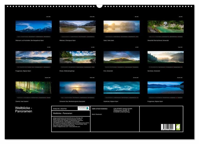 QUALITÄT - Hochwertiger Fotokalender mit 12 wunderschönen Motiven auf lichtbeständigem Bilderdruckpapier, robuste Spiralbindung mit Aufhängebügel.NACHHALTIG - deutliche Abfallreduzierung durch bedarfsgerechte Einzelstückfertigung, umweltfreundliches FSC-zertifiziertes Papier, Produktion in Deutschland, klimabewusste Logistik.PERFEKTES GESCHENK - Kalender für Freunde und Familie, für Kinder und Erwachsene, jung und alt, zu Weihnachten, Geburtstag oder zwischendurch.VIELFALT - Bildkalender in verschiedenen Formaten, z.B. DIN A5, DIN A4, DIN A3 sowie DIN A2. Ob Naturmotiv, Gemälde oder Fotos, ideal für ein persönliches Wohlfühlambiente.Faszinierende Landschaften im Panoramaformat von Autor(in): Martin Wasilewski