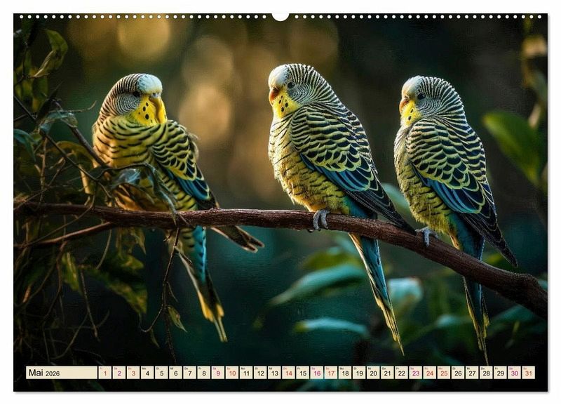 Der Fotokünstler Peter Roder hat farbenfrohe KI-Bilder dieser wunderschönen Tiere gestaltet. Ein Muss für jeden Wellensittich-Liebhaber und ein Hingucker für das ganze Jahr.