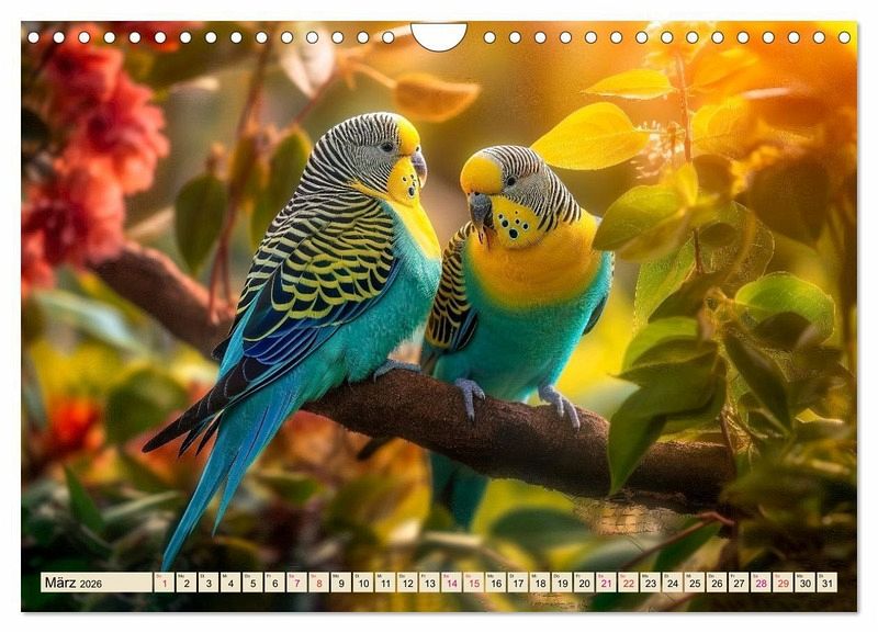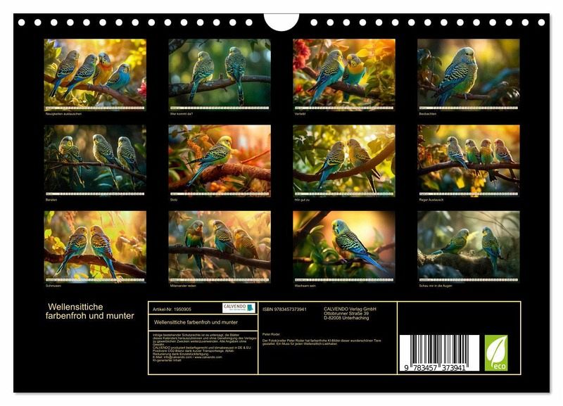 Der Fotokünstler Peter Roder hat farbenfrohe KI-Bilder dieser wunderschönen Tiere gestaltet. Ein Muss für jeden Wellensittich-Liebhaber und ein Hingucker für das ganze Jahr.