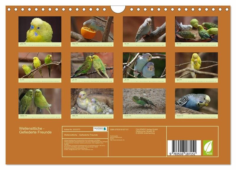 QUALITÄT - Hochwertiger Fotokalender mit 12 wunderschönen Motiven auf lichtbeständigem Bilderdruckpapier, robuste Spiralbindung mit Aufhängebügel.NACHHALTIG - deutliche Abfallreduzierung durch bedarfsgerechte Einzelstückfertigung, umweltfreundliches FSC-zertifiziertes Papier, Produktion in Deutschland, klimabewusste Logistik.PERFEKTES GESCHENK - Kalender für Freunde und Familie, für Kinder und Erwachsene, jung und alt, zu Weihnachten, Geburtstag oder zwischendurch.VIELFALT - Bildkalender in verschiedenen Formaten, z.B. DIN A5, DIN A4, DIN A3 sowie DIN A2. Ob Naturmotiv, Gemälde oder Fotos, ideal für ein persönliches Wohlfühlambiente.Außergewöhnliche Fotos von Wellensittichen von Autor(in): Barbara Mielewczyk