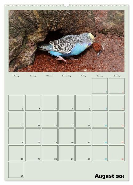 Wellensittich-Freunde werden diesen Kalender lieben: 13 Fotos zeigen die munteren und frechen Vögel voller Lebensfreude und liebevoll schäckernd mit ihren Partnern. Und dazu noch mit viel Platz für Termine.