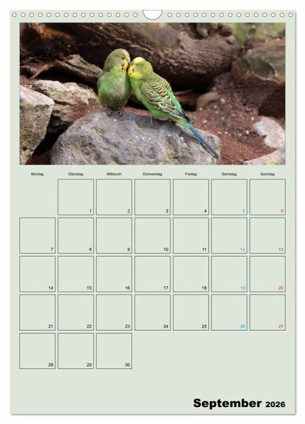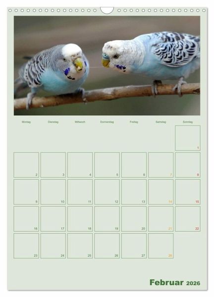 Wellensittich-Freunde werden diesen Kalender lieben: 13 Fotos zeigen die munteren und frechen Vögel voller Lebensfreude und liebevoll schäckernd mit ihren Partnern. Und dazu noch mit viel Platz für Termine.