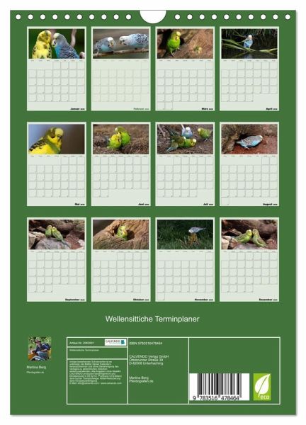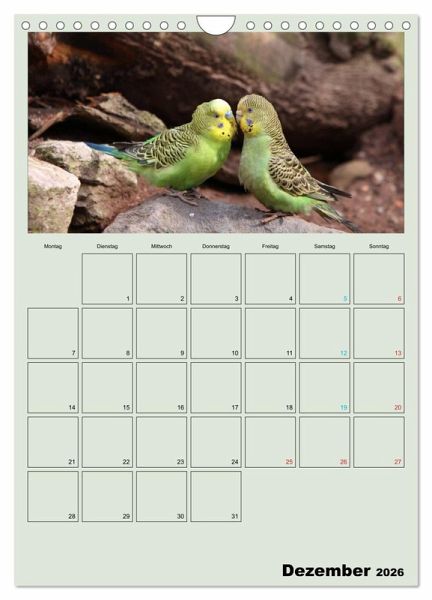 Wellensittich-Freunde werden diesen Kalender lieben: 13 Fotos zeigen die munteren und frechen Vögel voller Lebensfreude und liebevoll schäckernd mit ihren Partnern. Und dazu noch mit viel Platz für Termine.