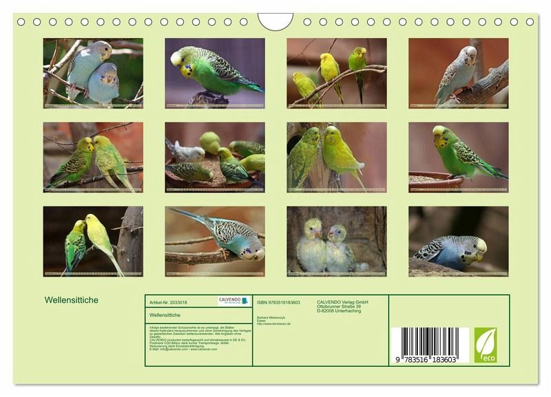 QUALITÄT - Hochwertiger Fotokalender mit 12 wunderschönen Motiven auf lichtbeständigem Bilderdruckpapier, robuste Spiralbindung mit Aufhängebügel.NACHHALTIG - deutliche Abfallreduzierung durch bedarfsgerechte Einzelstückfertigung, umweltfreundliches FSC-zertifiziertes Papier, Produktion in Deutschland, klimabewusste Logistik.PERFEKTES GESCHENK - Kalender für Freunde und Familie, für Kinder und Erwachsene, jung und alt, zu Weihnachten, Geburtstag oder zwischendurch.VIELFALT - Bildkalender in verschiedenen Formaten, z.B. DIN A5, DIN A4, DIN A3sowie DIN A2. Ob Naturmotiv, Gemälde oder Fotos, ideal für ein persönliches Wohlfühlambiente.Wunderschöne Fotos von Wellensittichen von Autor(in): Barbara Mielewczyk