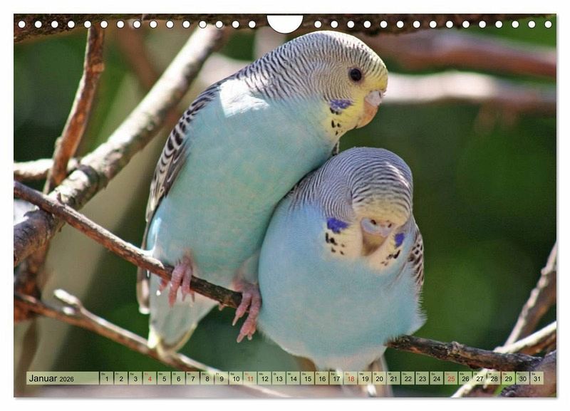 Wandkalender mit 12 wunderschönen Aufnahmen liebevoll zusammen gestellt zeigen das Leben der Wellensittiche - ein Geschenk für alle die Vögel lieben.