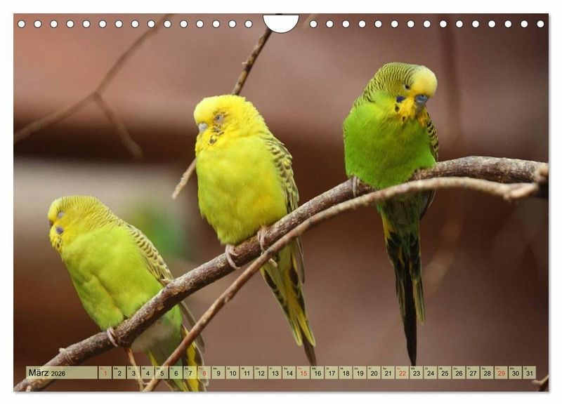 Diese bunten gefiederten Freunde auf Fotos festzuhalten und sie von der Zucht bis zum erwachsenen Vogel fotografisch zu begleiten ist mit diesem schönen Kalender gelungen.