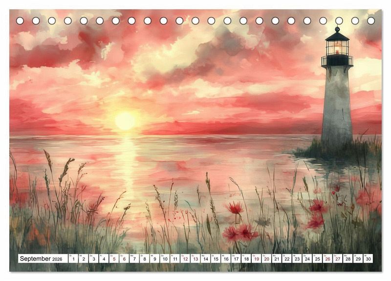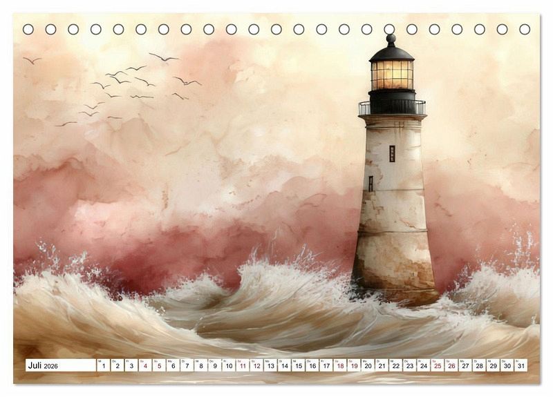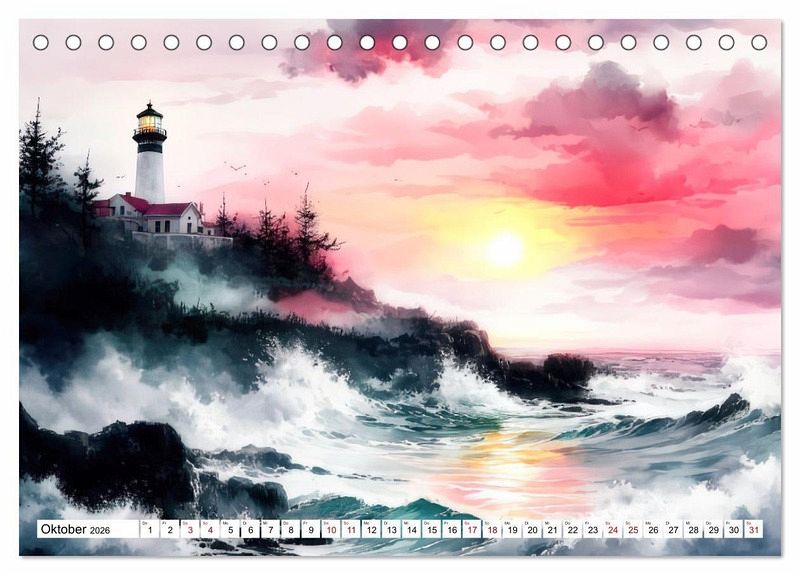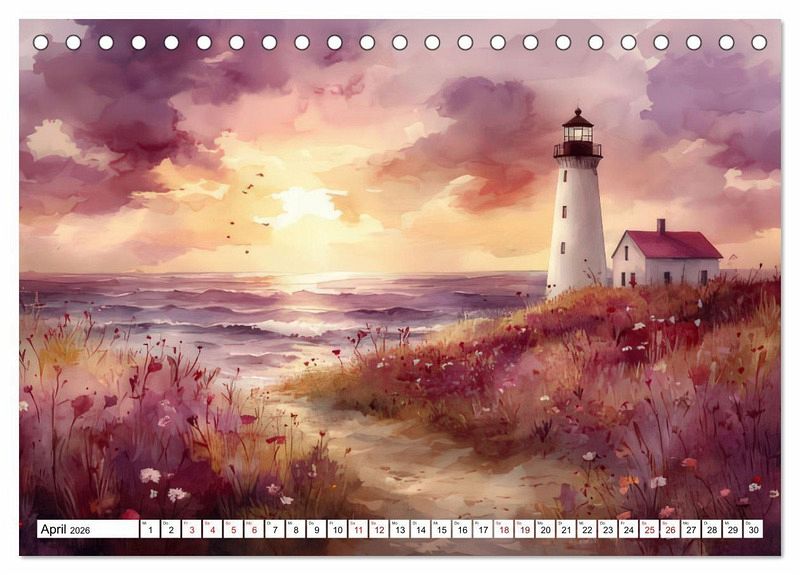 Perfekt für Liebhaber der maritimen Kunst und all jene, die sich von der Magie der Leuchttürme verzaubern lassen möchten. Lassen Sie sich jeden Monat aufs Neue von einem Spiel aus Farben und Formen begeistern und holen Sie sich ein Stück Küstenzauber nach Hause.