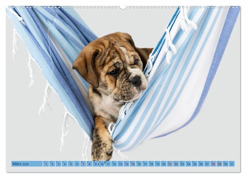 QUALITÄT - Hochwertiger Fotokalender mit 12 wunderschönen Motiven auf lichtbeständigem Bilderdruckpapier, robuste Spiralbindung mit Aufhängebügel.NACHHALTIG - deutliche Abfallreduzierung durch bedarfsgerechte Einzelstückfertigung, umweltfreundliches FSC-zertifiziertes Papier, Produktion in Deutschland, klimabewusste Logistik.PERFEKTES GESCHENK - Kalender für Freunde und Familie, für Kinder und Erwachsene, jung und alt, zu Weihnachten, Geburtstag oder zwischendurch.VIELFALT - Bildkalender in verschiedenen Formaten, z.B. DIN A5, DIN A4, DIN A3 sowie DIN A2. Ob Naturmotiv, Gemälde oder Fotos, ideal für ein persönliches Wohlfühlambiente.Drollige Old English Bulldog Welpen in einer Hängematte von Autor(in): Fotodesign Verena Scholze