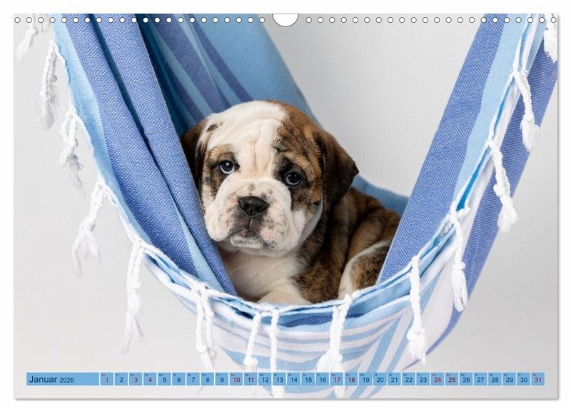 QUALITÄT - Hochwertiger Fotokalender mit 12 wunderschönen Motiven auf lichtbeständigem Bilderdruckpapier, robuste Spiralbindung mit Aufhängebügel.NACHHALTIG - deutliche Abfallreduzierung durch bedarfsgerechte Einzelstückfertigung, umweltfreundliches FSC-zertifiziertes Papier, Produktion in Deutschland, klimabewusste Logistik.PERFEKTES GESCHENK - Kalender für Freunde und Familie, für Kinder und Erwachsene, jung und alt, zu Weihnachten, Geburtstag oder zwischendurch.VIELFALT - Bildkalender in verschiedenen Formaten, z.B. DIN A5, DIN A4, DIN A3 sowie DIN A2. Ob Naturmotiv, Gemälde oder Fotos, ideal für ein persönliches Wohlfühlambiente.Drollige Old English Bulldog Welpen in einer Hängematte von Autor(in): Fotodesign Verena Scholze