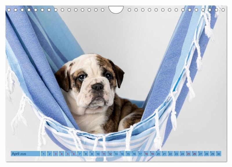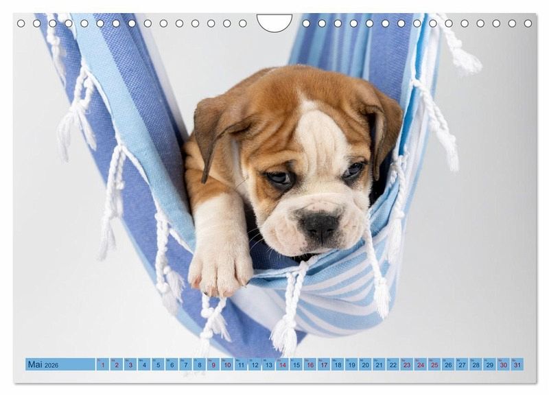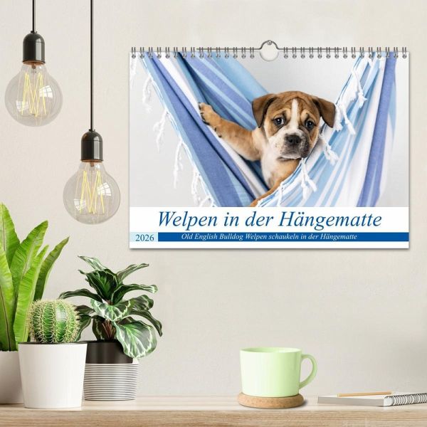 QUALITÄT - Hochwertiger Fotokalender mit 12 wunderschönen Motiven auf lichtbeständigem Bilderdruckpapier, robuste Spiralbindung mit Aufhängebügel.NACHHALTIG - deutliche Abfallreduzierung durch bedarfsgerechte Einzelstückfertigung, umweltfreundliches FSC-zertifiziertes Papier, Produktion in Deutschland, klimabewusste Logistik.PERFEKTES GESCHENK - Kalender für Freunde und Familie, für Kinder und Erwachsene, jung und alt, zu Weihnachten, Geburtstag oder zwischendurch.VIELFALT - Bildkalender in verschiedenen Formaten, z.B. DIN A5, DIN A4, DIN A3 sowie DIN A2. Ob Naturmotiv, Gemälde oder Fotos, ideal für ein persönliches Wohlfühlambiente.Drollige Old English Bulldog Welpen in einer Hängematte von Autor(in): Fotodesign Verena Scholze