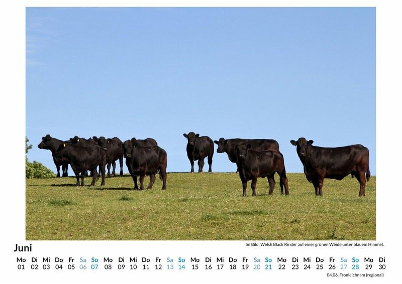 Entdecken Sie die majestätische Schönheit der Welsh-Black Rinder in unserem exklusiven Monats-Wandkalender! Mit 12 beeindruckenden Motiven dieser traditionsreichen Rinderrasse, gedruckt auf hochwertigem, lichtbeständigem Bilderdruckpapier, wird jeder Monat zu einem visuellen Highlight. Die kraftvollen und zugleich sanften Tiere werden in liebevoll ausgewählten Fotografien perfekt in Szene gesetzt. Gedruckt in Deutschland auf FSC-zertifiziertem Papier, vereint dieser Kalender Nachhaltigkeit und Ästhetik. Ideal für Tierliebhaber, Landwirte oder einfach als stilvolles Geschenk. Holen Sie sich ein Stück Natur in Ihr Zuhause - jetzt bestellen und jeden Monat genießen! Hochwertig Erleben Sie ein Jahr voller Eleganz mit unserem Premium-Fotokalender. Jedes der 12 Motive ist auf hochwertigem, lichtbeständigem Bilderdruckpapier gedruckt, um die Lebendigkeit jedes Bildes zu bewahren. Die robuste Spiralbindung gewährleistet Langlebigkeit und einfache Handhabung. Nachhaltig Unser Engagement für die Umwelt spiegelt sich in jedem Exemplar wider. Durch die Produktion auf Abruf reduzieren wir signifikant unseren Abfall. Wir verwenden ausschließlich umweltfreundliches, FSC-zertifiziertes Papier. Stolz gefertigt in Deutschland, achten wir bei unserer Logistik auf Klimaschutz, um unseren ökologischen Fußabdruck zu minimieren. Das ideale Geschenk Dieser Kalender ist das perfekte Präsent für jeden Anlass - ob Weihnachten, Geburtstage oder einfach als liebevolle Aufmerksamkeit zwischendurch. Geeignet für Freunde, Familie, Kinder und Erwachsene gleichermaßen, bereichert er jedes Zuhause mit seiner Vielfalt und Schönheit, unabhängig vom Alter der Beschenkten.