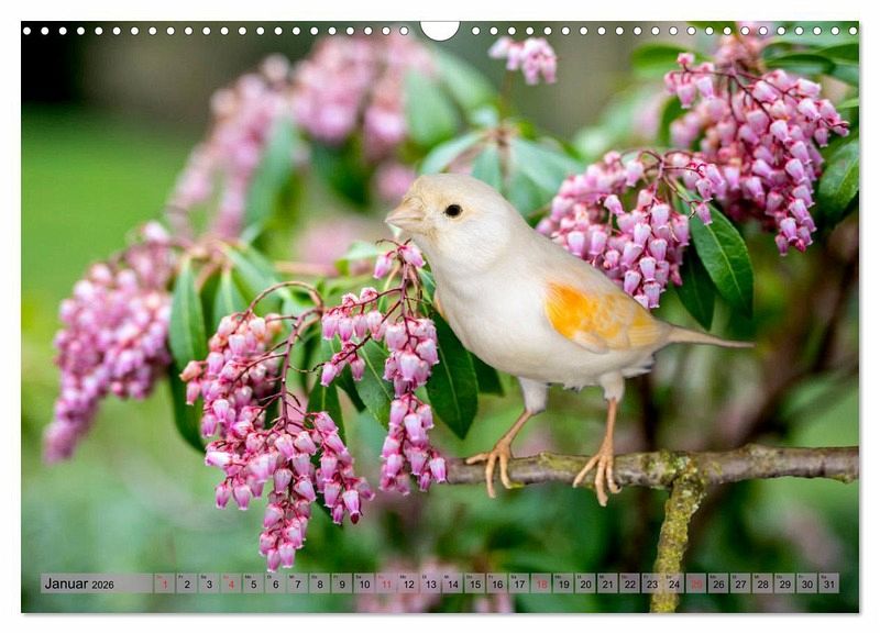 Eindrucksvolle Aufnahmen von Kanarienvögel. Sie erleben die Farben- und Formenvielfalt dieses beliebten Vogels. Dank moderner Bildbearbeitung sind die Kanarien auf Büschen und in Landschaften platziert, obwohl die Aufnahmen in einer großen Voliere gemacht wurden. Erleben Sie die Faszination Kanarienvogel.
