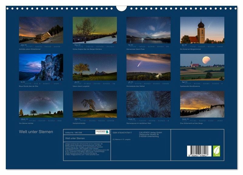 QUALITÄT - Hochwertiger Fotokalender mit 12 wunderschönen Motiven auf lichtbeständigem Bilderdruckpapier, robuste Spiralbindung mit Aufhängebügel.NACHHALTIG - deutliche Abfallreduzierung durch bedarfsgerechte Einzelstückfertigung, umweltfreundliches FSC-zertifiziertes Papier, Produktion in Deutschland, klimabewusste Logistik.PERFEKTES GESCHENK - Kalender für Freunde und Familie, für Kinder und Erwachsene, jung und alt, zu Weihnachten, Geburtstag oder zwischendurch.VIELFALT - Bildkalender in verschiedenen Formaten, z.B. DIN A5, DIN A4, DIN A3 sowie DIN A2. Ob Naturmotiv, Gemälde oder Fotos, ideal für ein persönliches Wohlfühlambiente.Nightscape-Fotografie von Markus Langlotz von Autor(in): Markus A. R. Langlotz