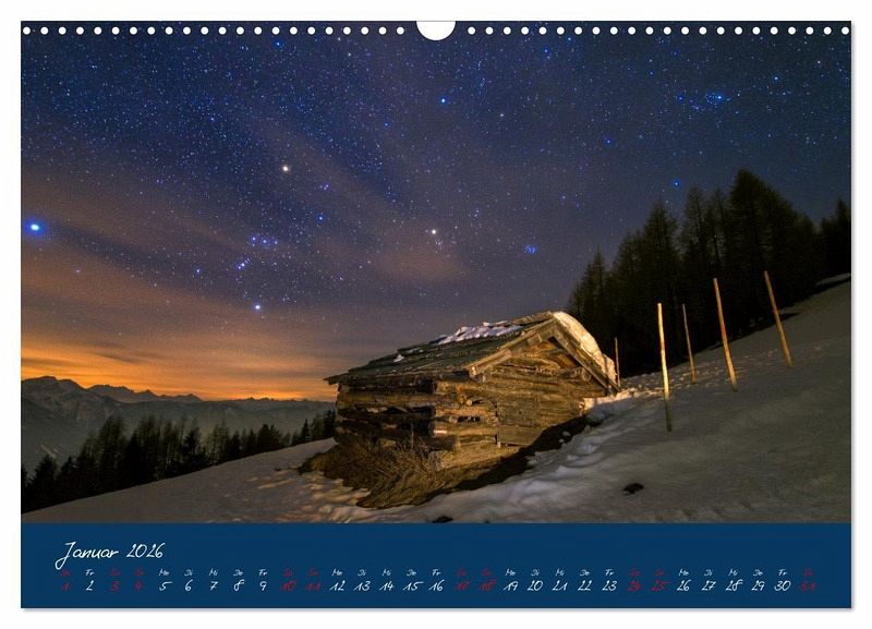 Januar: Almhütte unterm Winterhimmel