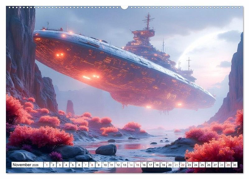 Tauche ein in die unendlichen Weiten des Weltalls mit diesem einzigartigen Sci-Fi-Kalender. Jedes Monatsblatt ist ein Fenster zu einer neuen, atemberaubenden Welt, geschaffen mit Hilfe von fortschrittlicher KI-Technologie. Entdecke leuchtende Alien-Landschaften, mysteriöse Stadtlandschaften, die in die Wände eines Canyons gebaut sind, und massive Raumstationen, die im Orbit von Gasriesen schweben. Erlebe eine visuelle Feier von Licht, Form und futuristischer Fantasie, die dich das ganze Jahr über begleiten wird. Ein Muss für jeden Sci-Fi-Fan und Liebhaber von detailreicher, KI-generierter Kunst.