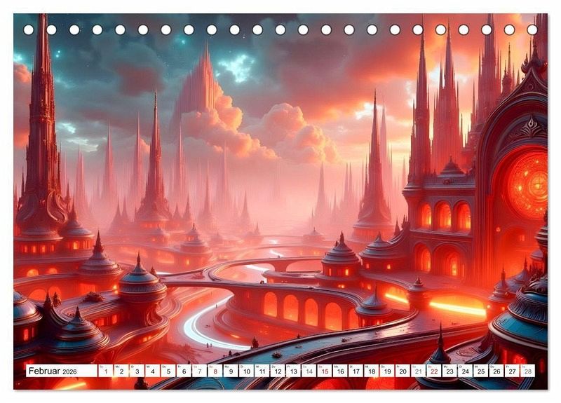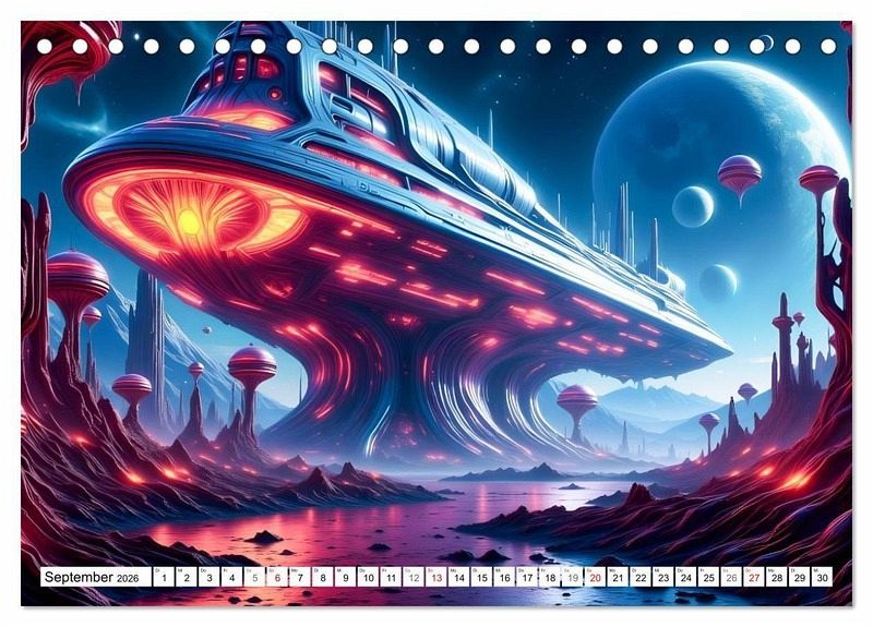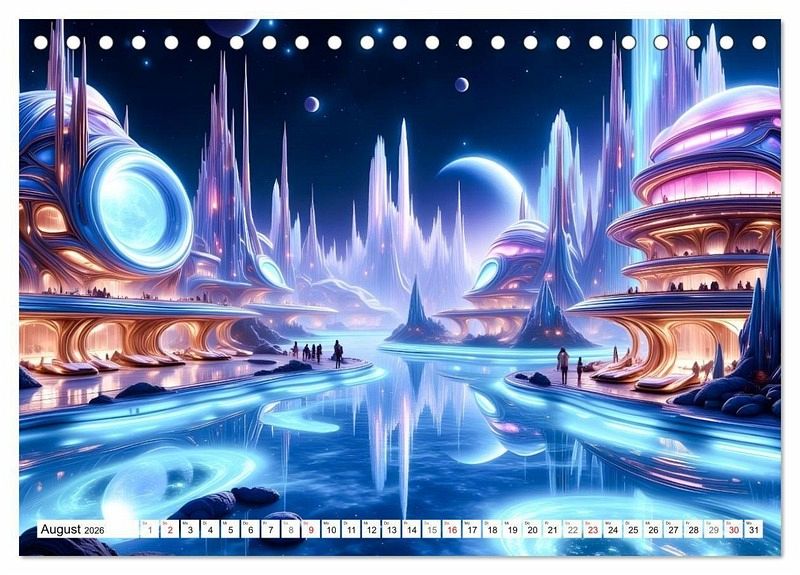 Tauche ein in die unendlichen Weiten des Weltalls mit diesem einzigartigen Sci-Fi-Kalender. Jedes Monatsblatt ist ein Fenster zu einer neuen, atemberaubenden Welt, geschaffen mit Hilfe von fortschrittlicher KI-Technologie. Entdecke leuchtende Alien-Landschaften, mysteriöse Stadtlandschaften, die in die Wände eines Canyons gebaut sind, und massive Raumstationen, die im Orbit von Gasriesen schweben. Erlebe eine visuelle Feier von Licht, Form und futuristischer Fantasie, die dich das ganze Jahr über begleiten wird. Ein Muss für jeden Sci-Fi-Fan und Liebhaber von detailreicher, KI-generierter Kunst.