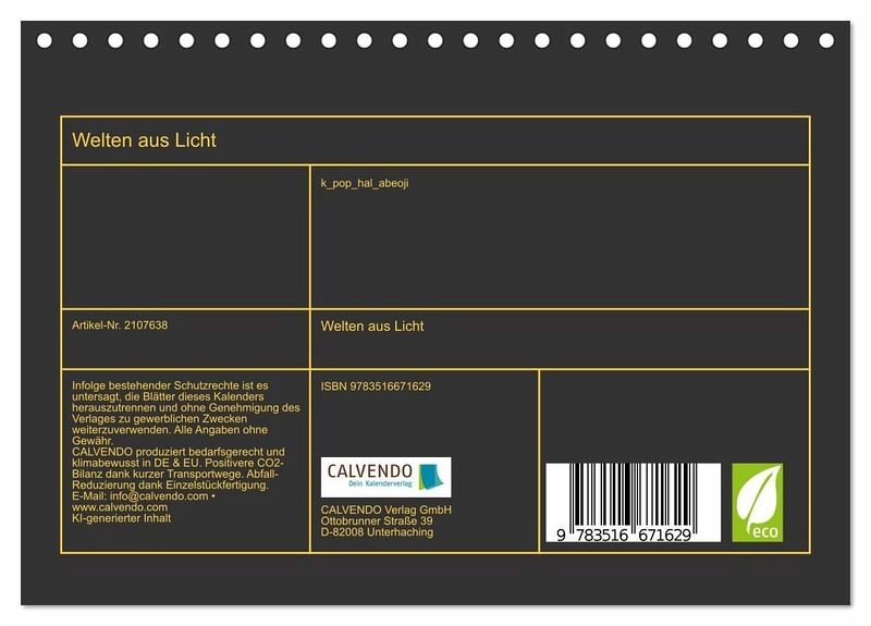 QUALITÄT - Hochwertiger Fotokalender mit 12 wunderschönen Motiven auf lichtbeständigem Bilderdruckpapier, robuste Spiralbindung.NACHHALTIG - deutliche Abfallreduzierung durch bedarfsgerechte Einzelstückfertigung, umweltfreundliches FSC-zertifiziertes Papier, Produktion in Deutschland, klimabewusste Logistik.PERFEKTES GESCHENK - Kalender für Freunde und Familie, für Kinder und Erwachsene, jung und alt, zu Weihnachten, Geburtstag oder zwischendurch.VIELFALT - Bildkalender in verschiedenen Formaten, z.B. DIN A5, DIN A4, DIN A3 sowie DIN A2. Ob Naturmotiv, Gemälde oder Fotos, ideal für ein persönliches Wohlfühlambiente.Eine visuelle Reise durch galaktische Wunder von Autor(in): k_pop_hal_abeoji