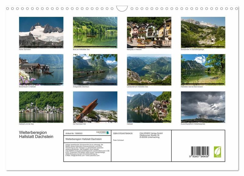 Dieser Kalender vom Reisefotografen Peter Schickert zeigt die faszinierende Welterberegion Hallstatt Dachstein von ihrer schönsten Seite: vom historischen Hallstatt bis zu den Gipfeln des Dachsteinmassivs.