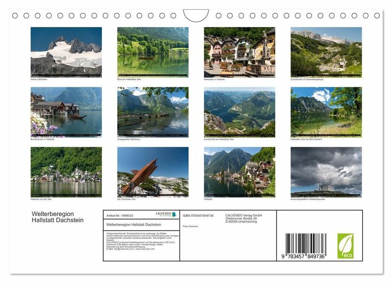 Dieser Kalender vom Reisefotografen Peter Schickert zeigt die faszinierende Welterberegion Hallstatt Dachstein von ihrer schönsten Seite: vom historischen Hallstatt bis zu den Gipfeln des Dachsteinmassivs.