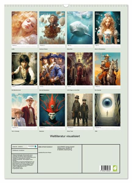 Erleben Sie das Beste der Weltliteratur auf eine völlig neue Art und Weise mit unserem Kalender "Weltliteratur visualisiert". Die Werke von berühmten Autoren wie Nabokov, Swift, Cervantes und Verne wurden neu interpretiert und durch die neueste KI-Technologie in kunstvolle Illustrationen verwandelt.