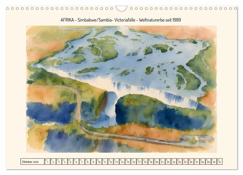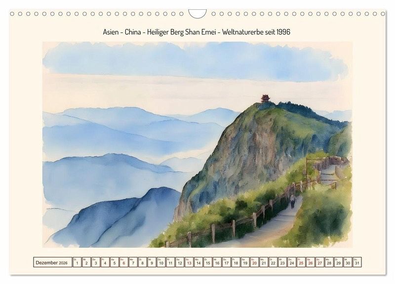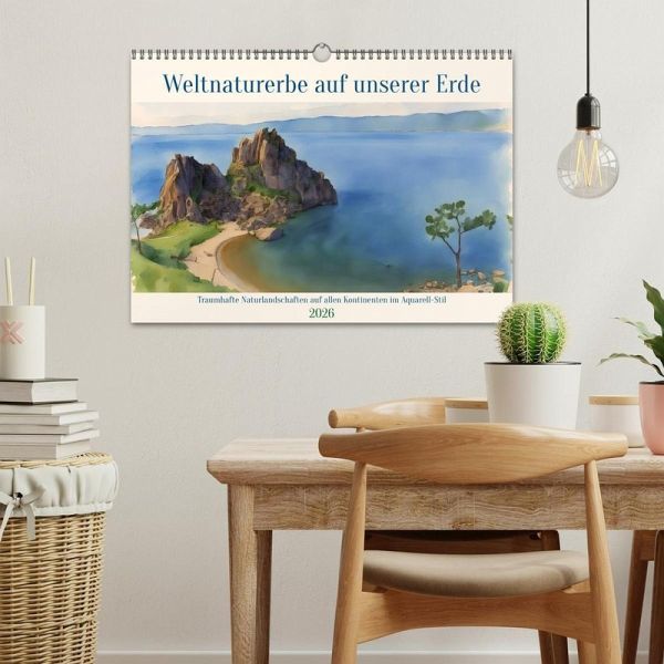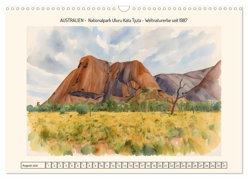 Weltnaturerbestätten sind Gebiete von atemberaubender natürlicher Schönheit, die nicht nur einzigartige Ökosysteme, geografische Vielfalt und seltene Arten beherbergen, sondern auch ein kollektives Engagement zum Ausdruck bringen, die wertvollsten Orte des Planeten für zukünftige Generationen zu bewahren. Für diesen Kalender wurden 12 Orte dieser Schönheit, verteilt auf allen Kontinenten, zusammengestellt. Mithilfe moderner Bildbearbeitungstechniken gelangen zauberhaften Bilder im Aquarellstil.
