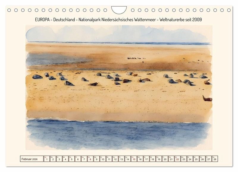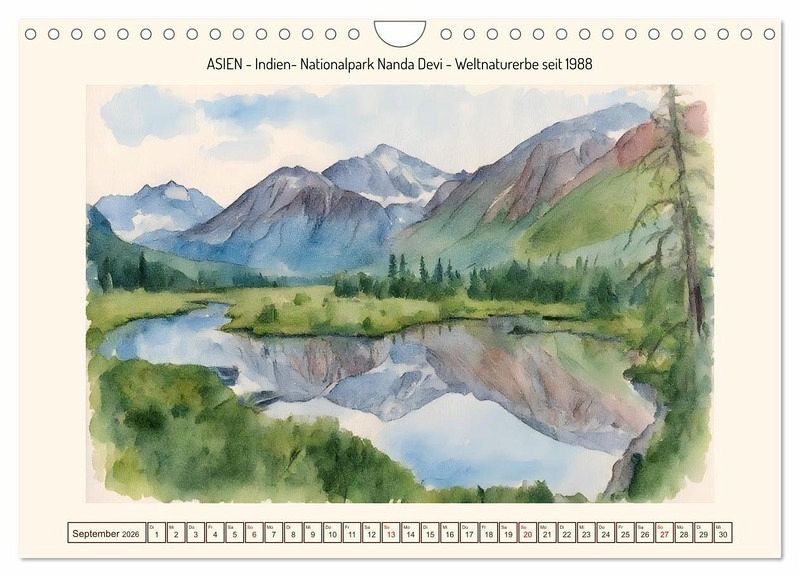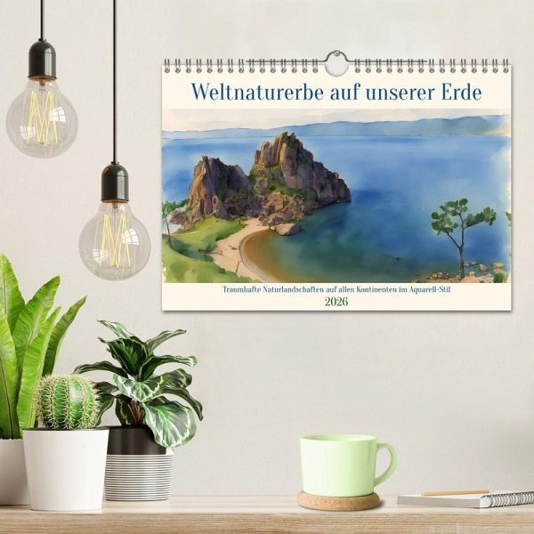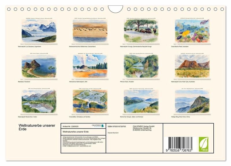 Weltnaturerbestätten sind Gebiete von atemberaubender natürlicher Schönheit, die nicht nur einzigartige Ökosysteme, geografische Vielfalt und seltene Arten beherbergen, sondern auch ein kollektives Engagement zum Ausdruck bringen, die wertvollsten Orte des Planeten für zukünftige Generationen zu bewahren. Für diesen Kalender wurden 12 Orte dieser Schönheit, verteilt auf allen Kontinenten, zusammengestellt. Mithilfe moderner Bildbearbeitungstechniken gelangen zauberhaften Bilder im Aquarellstil.