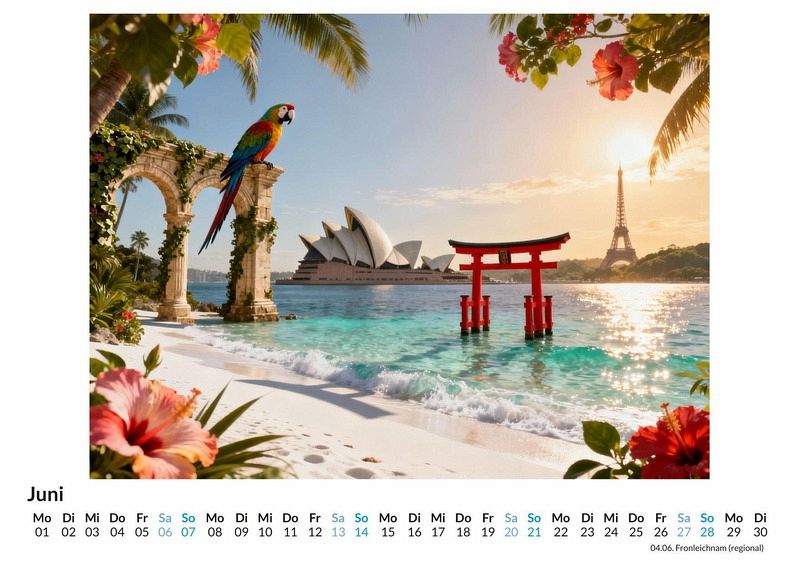 Die Sehnsucht nach fernen Ländern und neuen Kulturen beginnt oft mit einem einzigen Bild. Der Kalender "Weltweite Reise-Inspirationen" fängt genau diesen Moment ein und begleitet durch ein Jahr voller potenzieller Entdeckungen. Er versammelt Motive, die das Wesen weltbekannter Orte einfangen und die Lust am Reisen wecken. Dieser Kalender ist optimal geeignet: Für alle, die das Fernweh spüren und ihre nächste Reise planen. Für Weltenbummler im Herzen, die von zu Hause aus träumen. Als Geschenkidee für Freunde und Familie mit einer Leidenschaft für das Entdecken. Jeder Monat enthüllt eine neue Szenerie, von den pulsierenden Straßen Tokios bis zu den ruhigen Landschaften der schottischen Highlands. Die Sammlung führt durch bekannte Metropolen, zu antiken Wundern und an verborgene Naturparadiese. Jedes Motiv wurde durch die Synthese unzähliger Datenpunkte und kreativer Impulse digital zum Leben erweckt und interpretiert die Essenz des jeweiligen Ortes auf eine besondere Weise. Beim Kauf dieses Kalenders kann man Folgendes erwarten: Zwölf sorgfältig ausgewählte Motive berühmter Reiseziele. Ein praktisches Kalendarium für die Organisation des Alltags. Eine ganzjährige visuelle Reise um den Globus. Dieser Kalender ist mehr als nur ein Zeitplaner; er ist eine tägliche Einladung, die Welt zu entdecken und eigene Abenteuer zu planen. Eine Entdeckungsreise durch die Monate erwartet den Betrachter.
