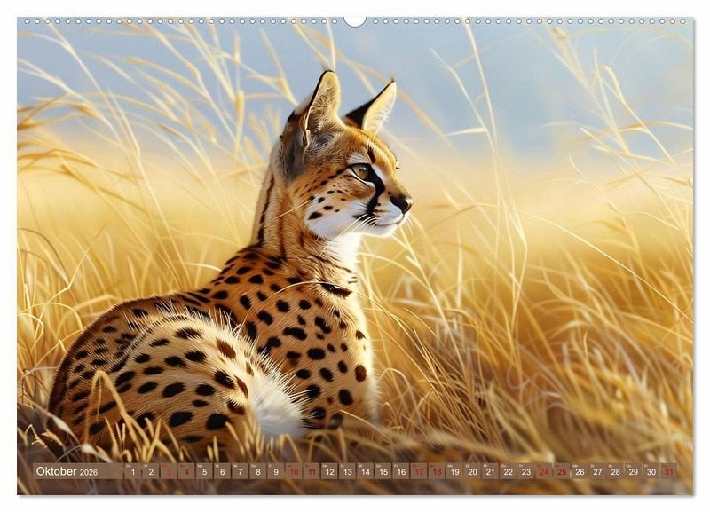 Oktober: Der Serval lebt in den Savannen Afrikas und ernährt sich überwiegend von kleinen Nagetieren.