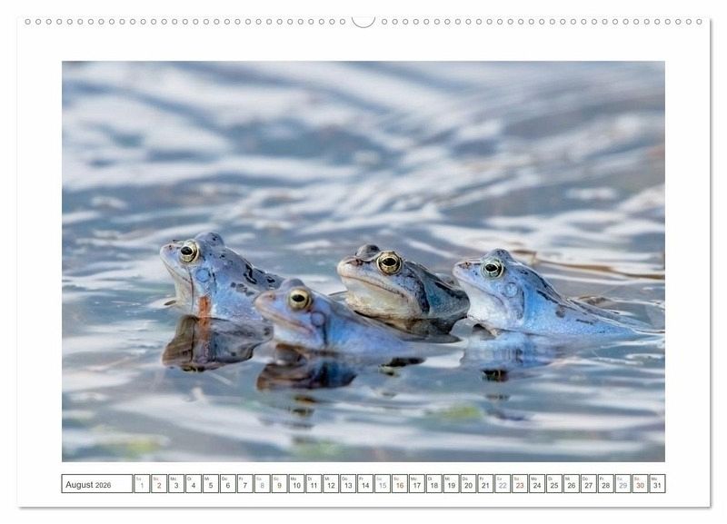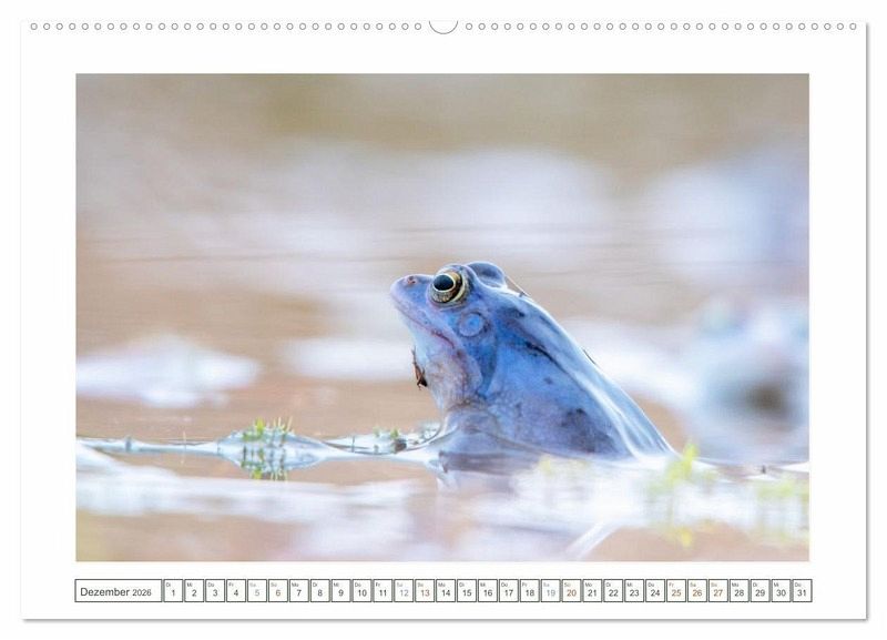 Einmal im Jahr machen sie blau - und das mit voller Leidenschaft: Moorfrosch-Maennchen zeigen zur Paarungszeit ihr seltenes Farbspiel in leuchtendem Himmelblau. Dieser Kalender faengt dieses faszinierende Naturspektakel auf einzigartige Weise ein - mit Witz, Stil und einem Hauch Froschromantik. Ob solo im Schilf, in trauter Zweisamkeit oder als Quak-Konzert im Moor: Diese Aufnahmen sind nicht nur selten, sondern einfach besonders. Fotografiert von Tanja Riedel - mit Humor, Hingabe und einem Blick fuer das Ungewoehnliche. Ein Naturkalender fuer alle, die Tiere lieben, gern schmunzeln und wissen, dass Blau mehr sein kann als nur eine Farbe.