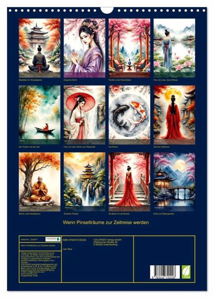 Tauchen Sie ein in die faszinierende Welt der Pinselträume und erleben Sie eine einzigartige Zeitreise durch das historische China. Zwölf meisterhafte Wasserfarbenbilder im Stile alter chinesischer Tuschezeichnungn zeigen die Schönheit, Harmonie und Vielfalt chinesischer Kultur von majestätischen Tempeln bis hin zu verträumten Landschaften und berührenden Alltagsszenen. Jeder Monat bringt ein neues Gefühl von Fernweh, Gelassenheit oder Abenteuer. Lassen Sie sich verzaubern von poetischer Bildkunst, die liebevoll und detailreich ki-generiert wurde. Ein kunstvolles Geschenk für alle, die Ästhetik, Geschichte und das Besondere lieben.