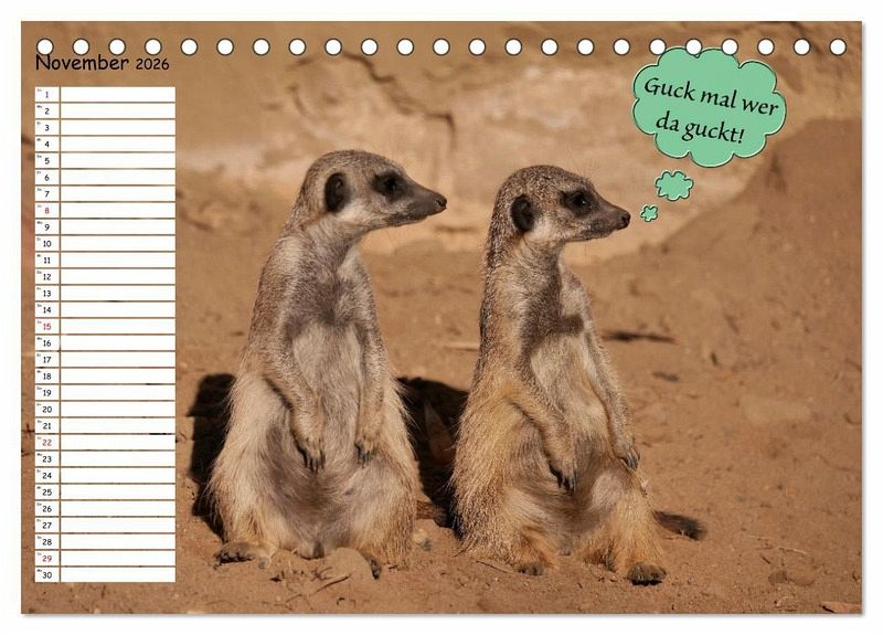 Der Kalender zeigt Ihnen bildlich die Gedanken der Tiere.