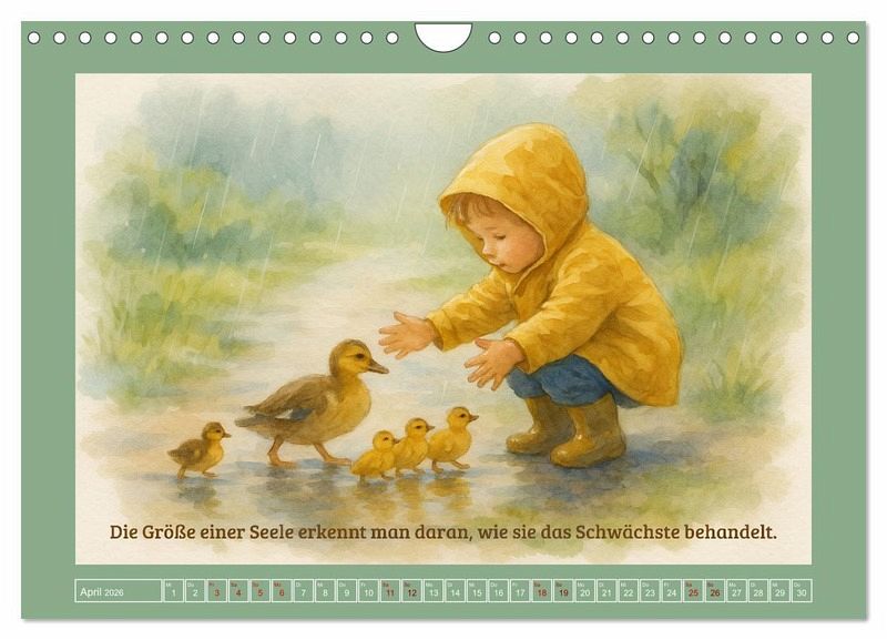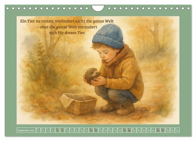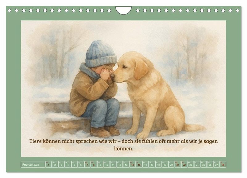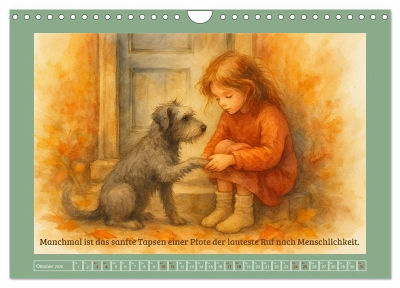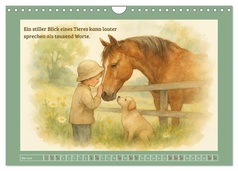 Dieser zart mit KI illustrierte Kalender lädt ein zu zwölf liebevollen Begegnungen zwischen Mensch und Tier. In feiner Aquarelloptik erzählt jedes Monatsbild von stiller Nähe, Mitgefühl und dem tiefen Respekt vor dem Leben.
