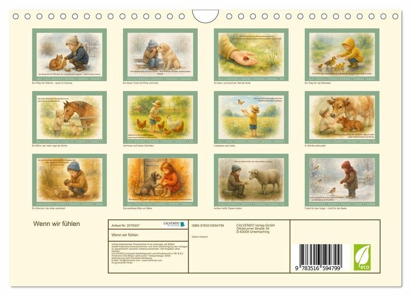 QUALITÄT - Hochwertiger Fotokalender mit 12 wunderschönen Motiven auf lichtbeständigem Bilderdruckpapier, robuste Spiralbindung mit Aufhängebügel.NACHHALTIG - deutliche Abfallreduzierung durch bedarfsgerechte Einzelstückfertigung, umweltfreundliches FSC-zertifiziertes Papier, Produktion in Deutschland, klimabewusste Logistik.PERFEKTES GESCHENK - Kalender für Freunde und Familie, für Kinder und Erwachsene, jung und alt, zu Weihnachten, Geburtstag oder zwischendurch.VIELFALT - Bildkalender in verschiedenen Formaten, z.B. DIN A5, DIN A4, DIN A3 sowie DIN A2. Ob Naturmotiv, Gemälde oder Fotos, ideal für ein persönliches Wohlfühlambiente.Ein Jahr liebevoller Begegnungen mit Tieren von Autor(in): Sabine Heiland