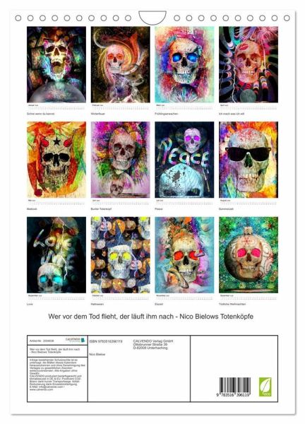 QUALITÄT - Hochwertiger Fotokalender mit 12 wunderschönen Motiven auf lichtbeständigem Bilderdruckpapier, robuste Spiralbindung mit Aufhängebügel.NACHHALTIG - deutliche Abfallreduzierung durch bedarfsgerechte Einzelstückfertigung, umweltfreundliches FSC-zertifiziertes Papier, Produktion in Deutschland, klimabewusste Logistik.PERFEKTES GESCHENK - Kalender für Freunde und Familie, für Kinder und Erwachsene, jung und alt, zu Weihnachten, Geburtstag oder zwischendurch.VIELFALT - Bildkalender in verschiedenen Formaten, z.B. DIN A5, DIN A4, DIN A3 sowie DIN A2. Ob Naturmotiv, Gemälde oder Fotos, ideal für ein persönliches Wohlfühlambiente.Tötenköpfe können auch freundlich und bunt sein. von Autor(in): Nico Bielow
