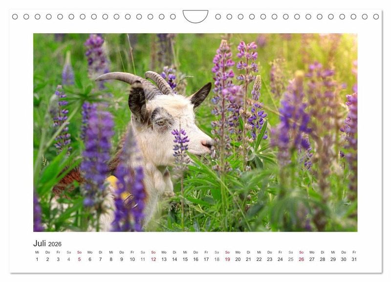 Juli: Ziege im Lupinenfeld