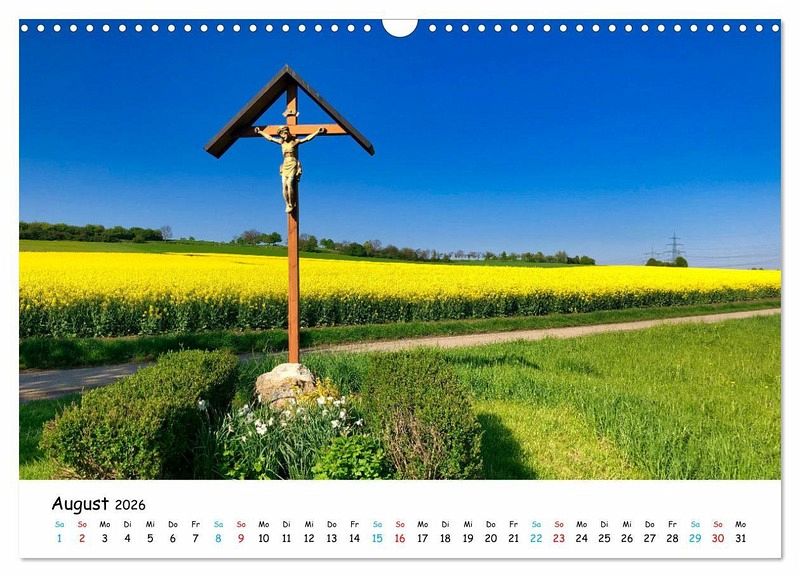 August: Feldkreuz im Rapsfeld beim Freitagshof