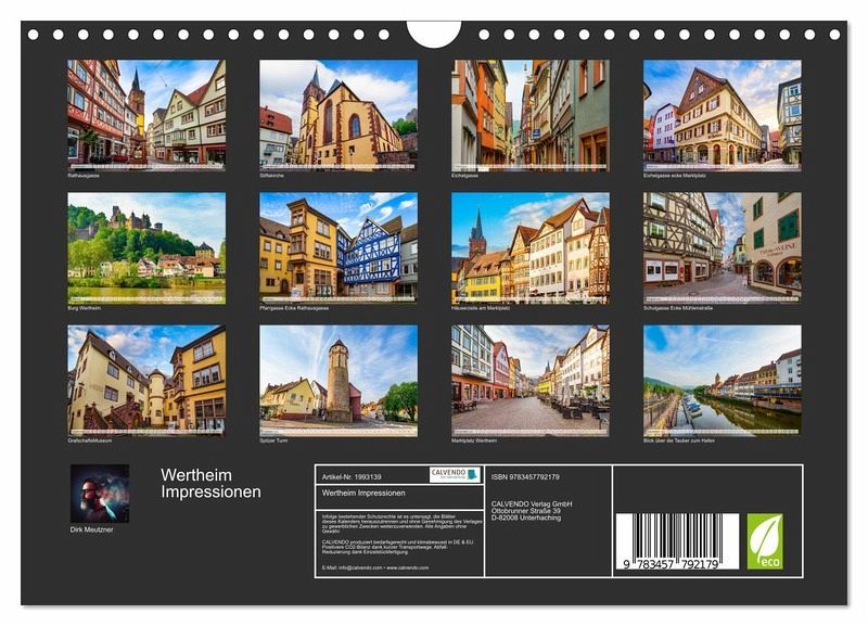 Begleiten Sie den Fotografen Dirk Meutzner in die bezaubernde Stadt Wertheim. Es erwarten Sie zwölf einmalig schöne Bilder dieser Stadt. Wertheim ist die nördlichste Stadt Baden-Württembergs, direkt an der Grenze zu Bayern, etwa 70 km südöstlich von Frankfurt am Main und 30 km westlich von Würzburg.