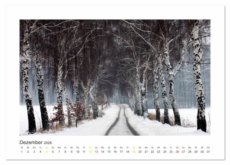 Dezember: Winterliche Birkenallee bei Völkerhausen