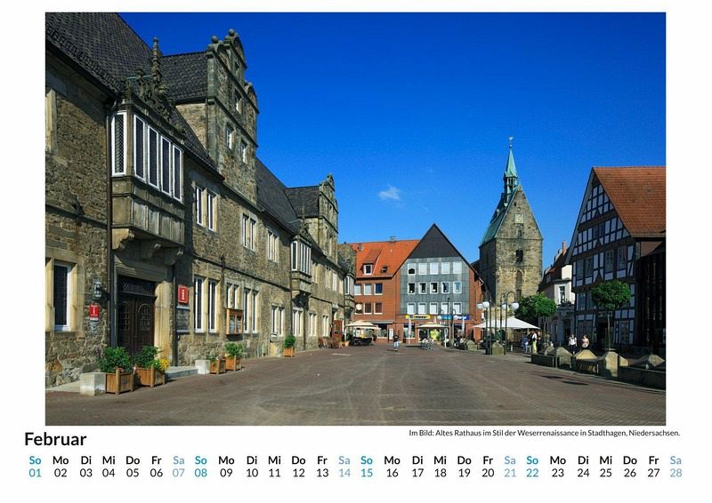 Entdecken Sie das malerische Weserbergland in Ihrem Zuhause! Unser hochwertiger Wandkalender entführt Sie Monat für Monat in die idyllische Landschaft dieser einzigartigen Region. Genießen Sie 12 liebevoll ausgewählte Motive, die die Schönheit des Weserberglands in all seinen Facetten einfangen - von sanften Hügeln bis hin zu historischen Fachwerkstädten. Gedruckt auf lichtbeständigem Bilderdruckpapier, bleibt die Brillanz der Farben das ganze Jahr über erhalten. Nachhaltig in Deutschland auf FSC-zertifiziertem Papier produziert, ist dieser Kalender nicht nur ein optisches Highlight, sondern auch ein umweltbewusster Begleiter. Holen Sie sich ein Stück Natur an Ihre Wand! Hochwertig Erleben Sie ein Jahr voller Eleganz mit unserem Premium-Fotokalender. Jedes der 12 Motive ist auf hochwertigem, lichtbeständigem Bilderdruckpapier gedruckt, um die Lebendigkeit jedes Bildes zu bewahren. Die robuste Spiralbindung gewährleistet Langlebigkeit und einfache Handhabung. Nachhaltig Unser Engagement für die Umwelt spiegelt sich in jedem Exemplar wider. Durch die Produktion auf Abruf reduzieren wir signifikant unseren Abfall. Wir verwenden ausschließlich umweltfreundliches, FSC-zertifiziertes Papier. Stolz gefertigt in Deutschland, achten wir bei unserer Logistik auf Klimaschutz, um unseren ökologischen Fußabdruck zu minimieren. Das ideale Geschenk Dieser Kalender ist das perfekte Präsent für jeden Anlass - ob Weihnachten, Geburtstage oder einfach als liebevolle Aufmerksamkeit zwischendurch. Geeignet für Freunde, Familie, Kinder und Erwachsene gleichermaßen, bereichert er jedes Zuhause mit seiner Vielfalt und Schönheit, unabhängig vom Alter der Beschenkten.