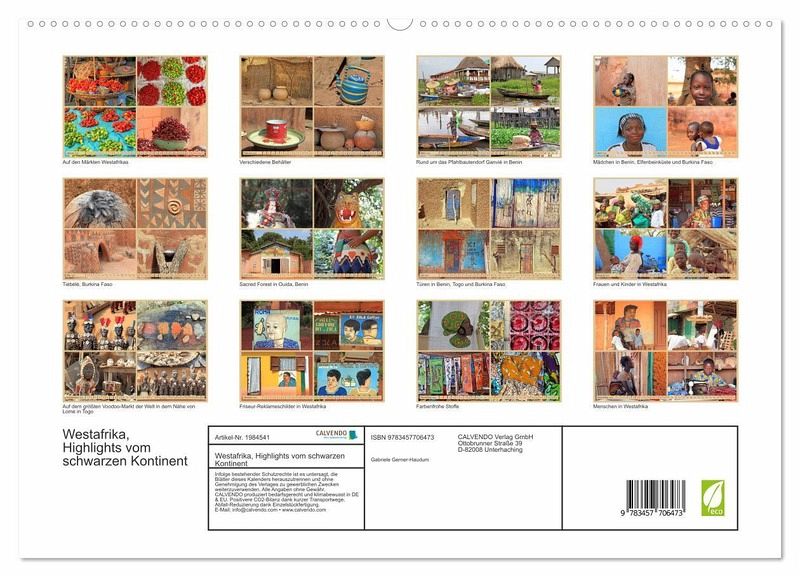 PREMIUM-LINIE - Brillanter Fotokalender mit 12 wunderschönen Motiven, Kunstdruck in Hochglanz in Museumsqualität.QUALITÄT - edle Materialien, stabile Rückwand mit 2 innovativen Einstecktaschen für eine optimale Präsentation an der Wand.NACHHALTIG - deutliche Abfallreduzierung durch bedarfsgerechte Einzelstückfertigung, umweltfreundliches FSC-zertifiziertes Papier, Produktion in Deutschland, klimabewusste Logistik.PERFEKTES GESCHENK - Kalender für Freunde und Familie, für Kinder und Erwachsene, jung und alt, zu Weihnachten, Geburtstag oder zwischendurch.Eine Bilderreise durch Westafrika: Ahnenkulte, Voodoozauber und freundliche Menschen. von Autor(in): Gabriele Gerner-Haudum