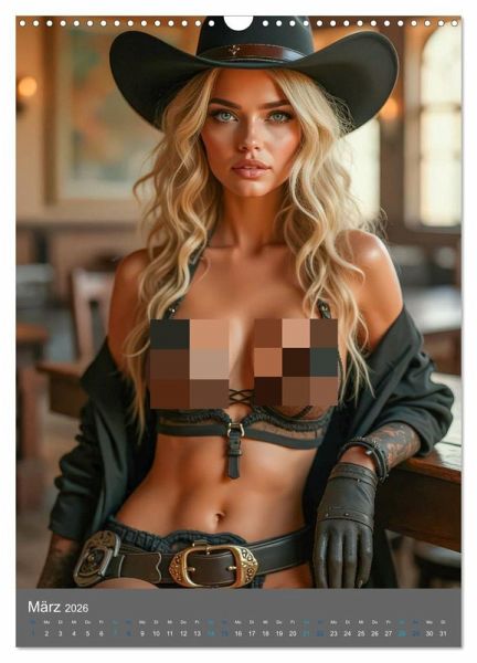 Tauchen Sie ein in die sinnliche Welt der "Western-Grazien" - ein exklusiver KI Wandkalender, der die Schönheit und Erotik der Frauen des Wilden Westens in atemberaubenden Bildern zelebriert. Jeder Monat enthüllt eine neue, aufregende Wild West Frau, die mit ihrer Anmut und ihrem verführerischen Charme begeistert.