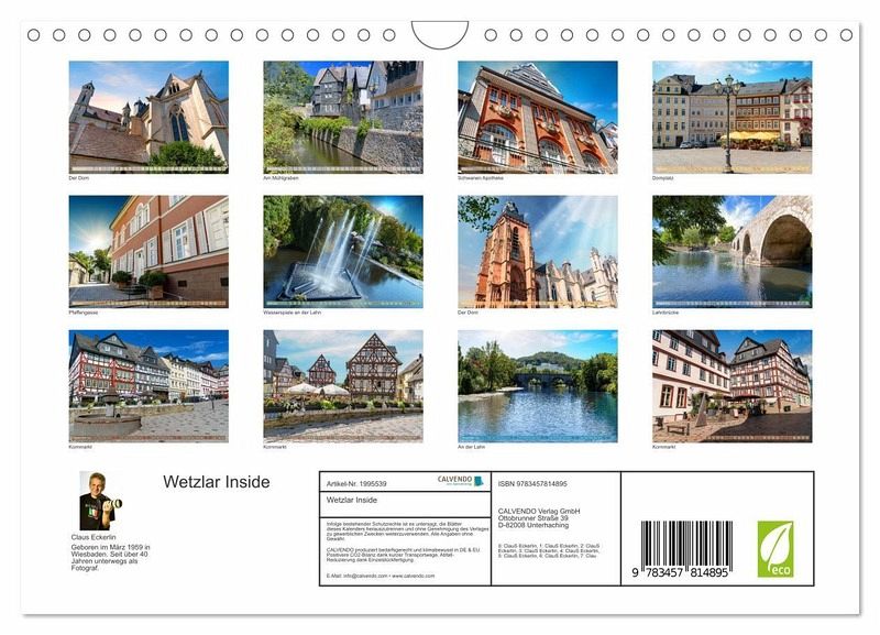 QUALITÄT - Hochwertiger Fotokalender mit 12 wunderschönen Motiven auf lichtbeständigem Bilderdruckpapier, robuste Spiralbindung mit Aufhängebügel.NACHHALTIG - deutliche Abfallreduzierung durch bedarfsgerechte Einzelstückfertigung, umweltfreundliches FSC-zertifiziertes Papier, Produktion in Deutschland, klimabewusste Logistik.PERFEKTES GESCHENK - Kalender für Freunde und Familie, für Kinder und Erwachsene, jung und alt, zu Weihnachten, Geburtstag oder zwischendurch.VIELFALT - Bildkalender in verschiedenen Formaten, z.B. DIN A5, DIN A4, DIN A3 sowie DIN A2. Ob Naturmotiv, Gemälde oder Fotos, ideal für ein persönliches Wohlfühlambiente.Wetzlar - Die Industriestadt an der Lahn von Autor(in): Claus Eckerlin