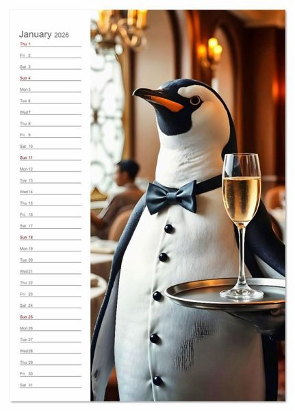 For a whole year, animals accompany us in unusual roles. Whether as waiters, postmen or Christmas bakers, penguins, dachshunds and co. slip into charming disguises and present themselves in the midst of human professions. The AI generated, photorealistic images show lovingly staged everyday scenes with animal humour. Original, surprising and designed with a wink. Ideal for anyone who loves creative calendars with heart and humour.