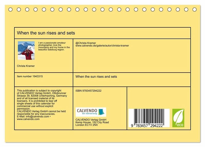 QUALITY - High-quality photo calendar with 12 beautiful images on light-resistant paper, robust spiral binding.SUSTAINABLE - Significant waste reduction due to print-on-demand production, environmentally friendly FSC-certified paper, produced locally, climate-conscious logistical processes.PERFECT GIFT - calendars for friends and family, for children, all ages and all occasions, from Christmas to birthdays and everything in between.LOTS OF CHOICE - Wall calendars in different sizes (DIN A4 and DIN A3), for any topic and personal taste, featuring photography, painting and illustrations.Magical moments in the Austrian Alps von Autor(in): Christa Kramer