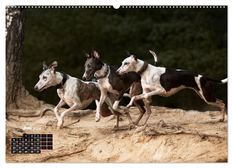 Sie fliegen mit bis zu 65 Stundenkilometern, schnell wie ein Peitschenhieb, flach über den Boden. Daher kommt der Name Whippet - was kleine Peitsche bedeutet. Zuhause gilt - Get a Whippet, loose a Couch - Der Kuschelfaktor ist hoch.