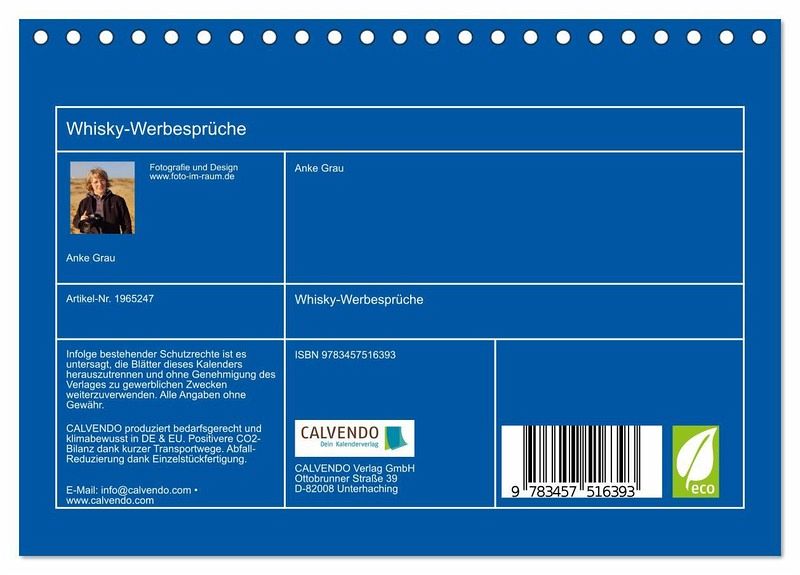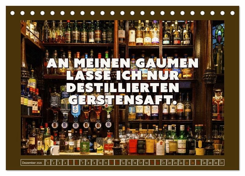 QUALITÄT - Hochwertiger Fotokalender mit 12 wunderschönen Motiven auf lichtbeständigem Bilderdruckpapier, robuste Spiralbindung.NACHHALTIG - deutliche Abfallreduzierung durch bedarfsgerechte Einzelstückfertigung, umweltfreundliches FSC-zertifiziertes Papier, Produktion in Deutschland, klimabewusste Logistik.PERFEKTES GESCHENK - Kalender für Freunde und Familie, für Kinder und Erwachsene, jung und alt, zu Weihnachten, Geburtstag oder zwischendurch.VIELFALT - Bildkalender in verschiedenen Formaten, z.B. DIN A5, DIN A4, DIN A3 sowie DIN A2. Ob Naturmotiv, Gemälde oder Fotos, ideal für ein persönliches Wohlfühlambiente.Flotte Whisky-Werbung mit tollen Schottland-Motiven von Autor(in): Anke Grau