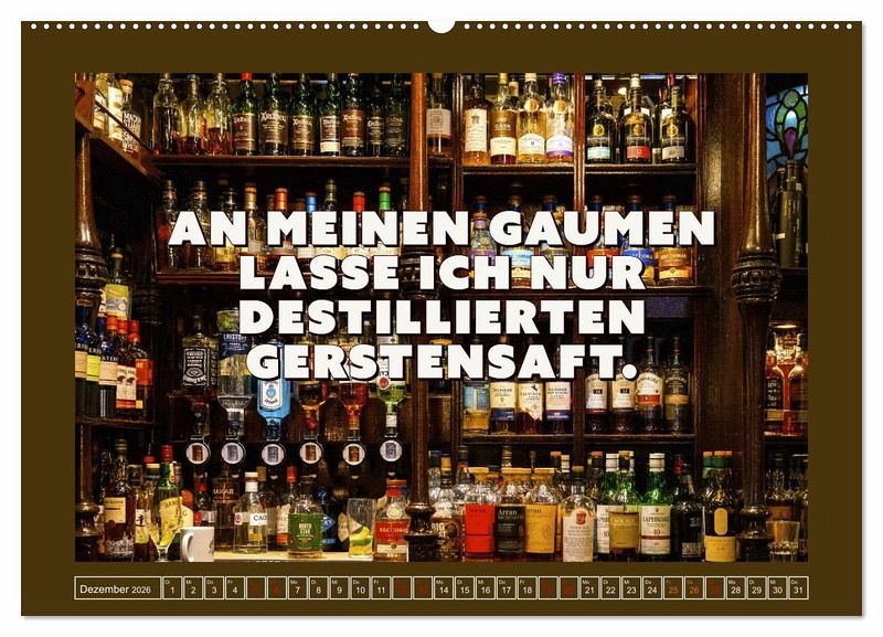 QUALITÄT - Hochwertiger Fotokalender mit 12 wunderschönen Motiven auf lichtbeständigem Bilderdruckpapier, robuste Spiralbindung mit Aufhängebügel.NACHHALTIG - deutliche Abfallreduzierung durch bedarfsgerechte Einzelstückfertigung, umweltfreundliches FSC-zertifiziertes Papier, Produktion in Deutschland, klimabewusste Logistik.PERFEKTES GESCHENK - Kalender für Freunde und Familie, für Kinder und Erwachsene, jung und alt, zu Weihnachten, Geburtstag oder zwischendurch.VIELFALT - Bildkalender in verschiedenen Formaten, z.B. DIN A5, DIN A4, DIN A3 sowie DIN A2. Ob Naturmotiv, Gemälde oder Fotos, ideal für ein persönliches Wohlfühlambiente.Flotte Whisky-Werbung mit tollen Schottland-Motiven von Autor(in): Anke Grau
