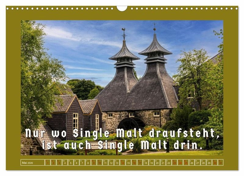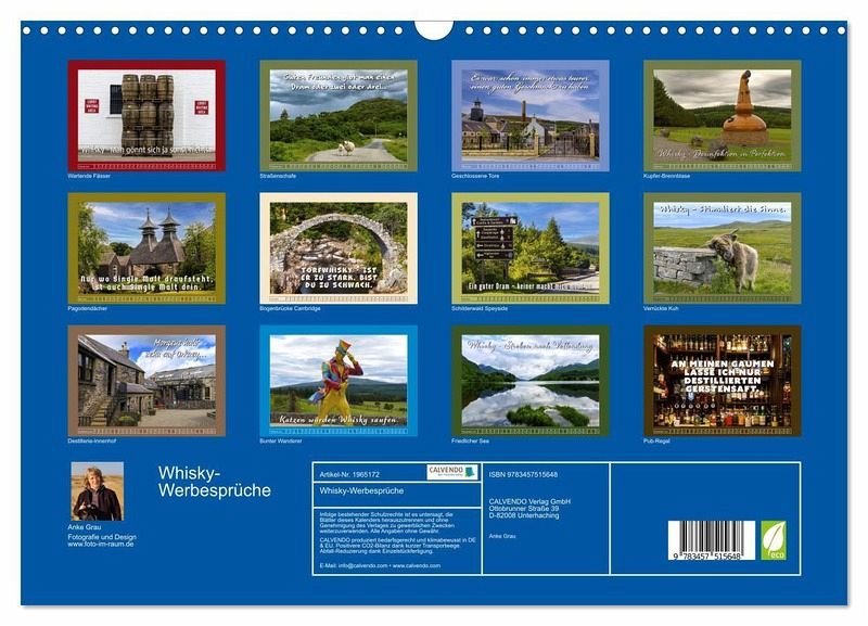 QUALITÄT - Hochwertiger Fotokalender mit 12 wunderschönen Motiven auf lichtbeständigem Bilderdruckpapier, robuste Spiralbindung mit Aufhängebügel.NACHHALTIG - deutliche Abfallreduzierung durch bedarfsgerechte Einzelstückfertigung, umweltfreundliches FSC-zertifiziertes Papier, Produktion in Deutschland, klimabewusste Logistik.PERFEKTES GESCHENK - Kalender für Freunde und Familie, für Kinder und Erwachsene, jung und alt, zu Weihnachten, Geburtstag oder zwischendurch.VIELFALT - Bildkalender in verschiedenen Formaten, z.B. DIN A5, DIN A4, DIN A3 sowie DIN A2. Ob Naturmotiv, Gemälde oder Fotos, ideal für ein persönliches Wohlfühlambiente.Flotte Whisky-Werbung mit tollen Schottland-Motiven von Autor(in): Anke Grau