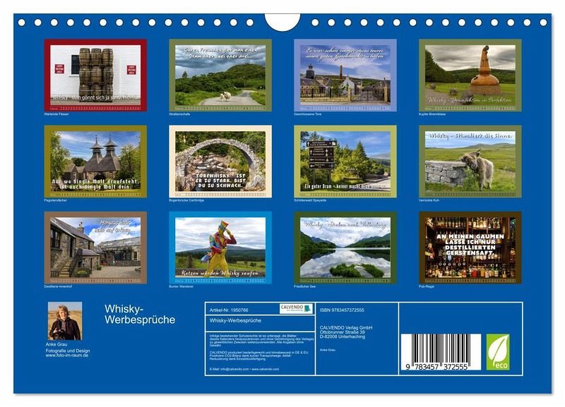 QUALITÄT - Hochwertiger Fotokalender mit 12 wunderschönen Motiven auf lichtbeständigem Bilderdruckpapier, robuste Spiralbindung mit Aufhängebügel.NACHHALTIG - deutliche Abfallreduzierung durch bedarfsgerechte Einzelstückfertigung, umweltfreundliches FSC-zertifiziertes Papier, Produktion in Deutschland, klimabewusste Logistik.PERFEKTES GESCHENK - Kalender für Freunde und Familie, für Kinder und Erwachsene, jung und alt, zu Weihnachten, Geburtstag oder zwischendurch.VIELFALT - Bildkalender in verschiedenen Formaten, z.B. DIN A5, DIN A4, DIN A3 sowie DIN A2. Ob Naturmotiv, Gemälde oder Fotos, ideal für ein persönliches Wohlfühlambiente.Flotte Whisky-Werbung mit tollen Schottland-Motiven von Autor(in): Anke Grau